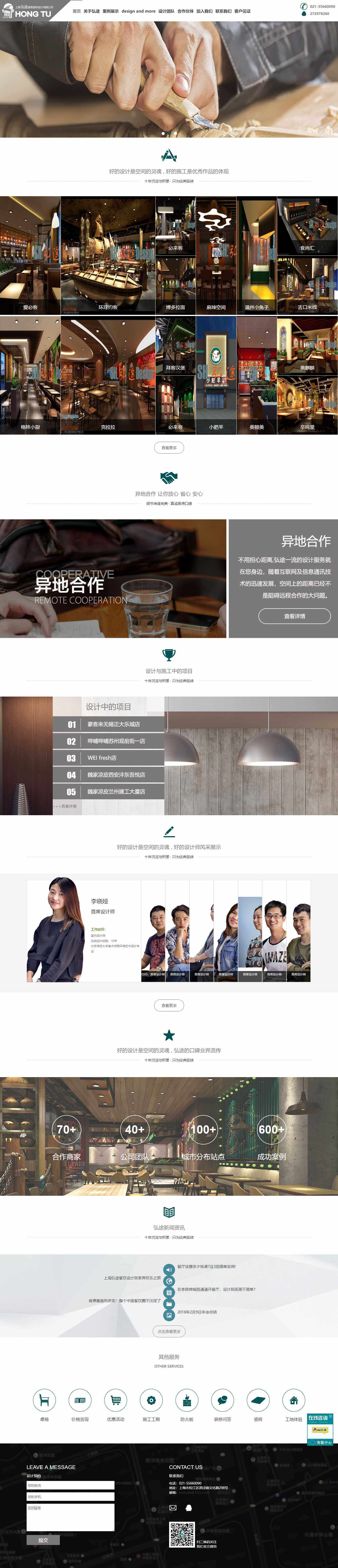 上海弘途建筑装饰设计有限公司,餐饮连锁设计与装修专家,至今完成过六百多家餐饮连锁实体店,合作的连锁餐饮企业有家喻户晓的"肯德基"、澳 洲餐饮巨头"澳普多"、泉州的"凯撒亚咪咕批萨餐厅"、"好而由",连锁中式快餐"来必堡"、位于上海人民广场的"急先锋""锵锵饭""山 崎"、福州"必来客"、哈尔滨"汉玛斯""、湖南"佳佳基"、山东"德纳西"、广西南宁"桂柳记"、宁夏银川回族自治区万达广场"九佳一"、 "宁丰餐饮现代城自助火锅店"、南通"蒸蒸日上"、宁夏银川回族自治区现代城"日式精品火锅店"和"锅锅菜店"等。